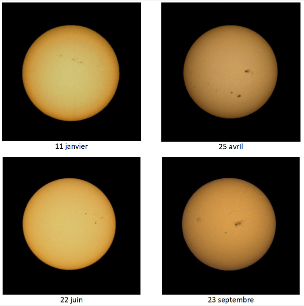 Autre idée fausse courante : il fait plus froid en hiver car nous sommes plus loin du Soleil. Ce n'est pas une idée farfelue mais elle est fausse. La Terre est légèrement plus près du Soleil début janvier. Une activité simple pour le vérifier consiste à observer 4 photos du Soleil prises à 4 dates différentes dans les mêmes conditions. Le Soleil doit paraître plus gros quand on en est proche, en supposant que sa taille réelle reste constante.