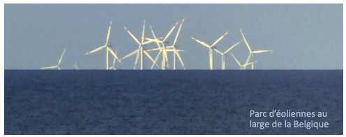 Plus les éoliennes sont éloignées, moins on en voit la base. Ce qui s'explique par la rotondité de la Terre.