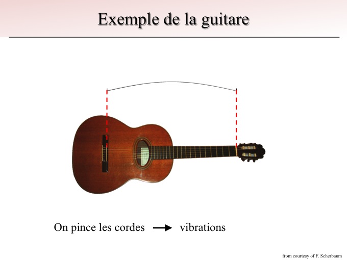 Prenons comme premier exemple la guitare. Lorsque l'on pince une corde, on la met en vibration.
