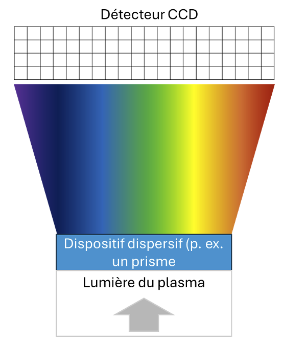 Le fait que les CCD fournissent des informations sur la position est extrêmement utile pour séparer la lumière en ses différentes longueurs d'onde. En principe, le CCD mesure toute la lumière, quelle que soit la longueur d'onde ; de sorte que pour identifier les éléments, il est nécessaire de séparer la lumière blanche du plasma en ses différentes longueurs d'onde.