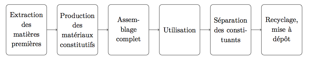Figure 2 : Principales étapes de la vie d'un produit, thèse V. Debusschère, 2010. (http://tel.archives-ouvertes.fr/tel-00443702/fr/).