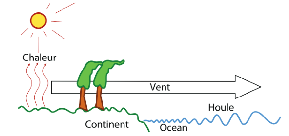 Figure 5 : Mécanisme de création de la houle, thèse J. Aubry (http://tel.archives-ouvertes.fr/tel-00662488/).