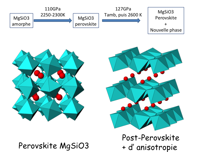 Cette découverte résulte d'un travail assez récent (2004) publié dans la revue Science. La couche D" semble dominée par la présence de la post-perovskite qui présente une structure plus laméllaire que la perovskite et donc plus d'anisotropie.