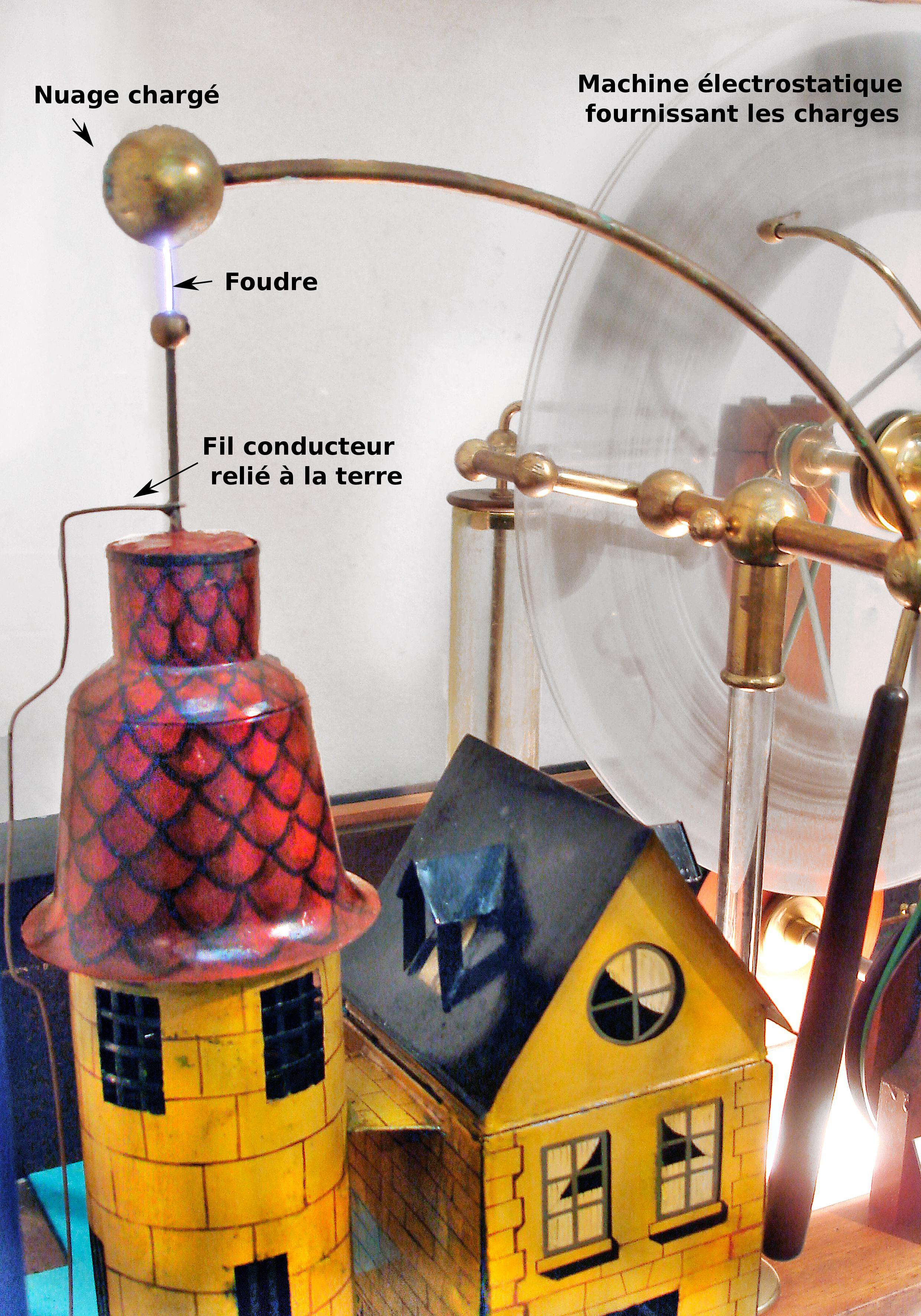 - Un nuage d'orage est un corps chargé d'électricité. Une tige métallique installée au sommet d'un bâtiment et relié à la terre doit ainsi permettre d'écouler, sans risque de foudroiement, l'électricité contenue dans l'éclair.