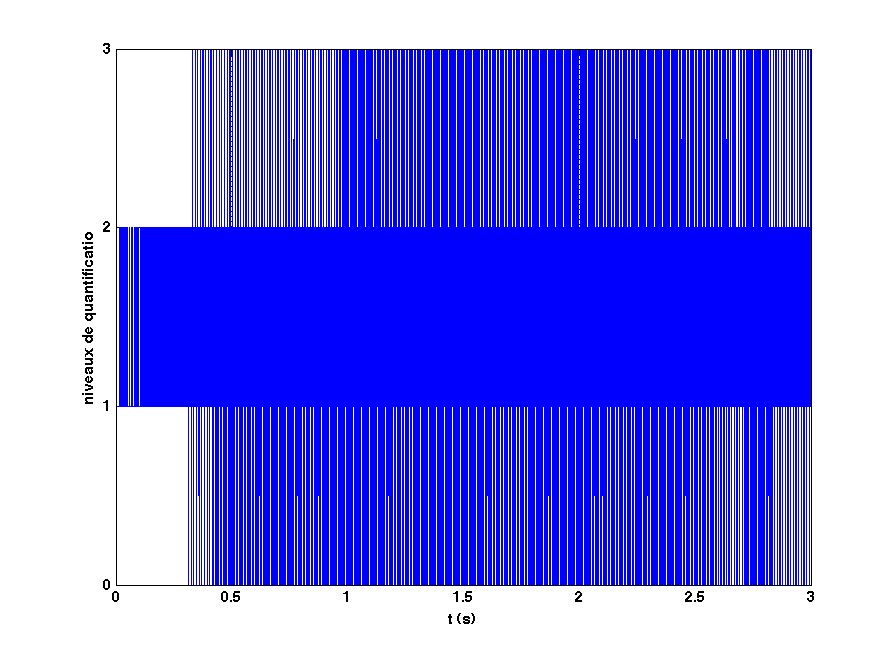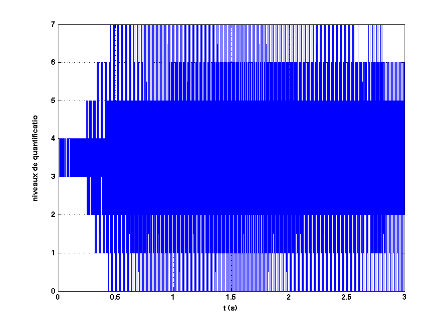 Afin de percevoir les effets de la précision choisie (entre 2 et 8 bits) lors de l'étape de quantification, nous allons maintenant présenter les signaux numérisés ainsi que leur restitution sonore correspondante.